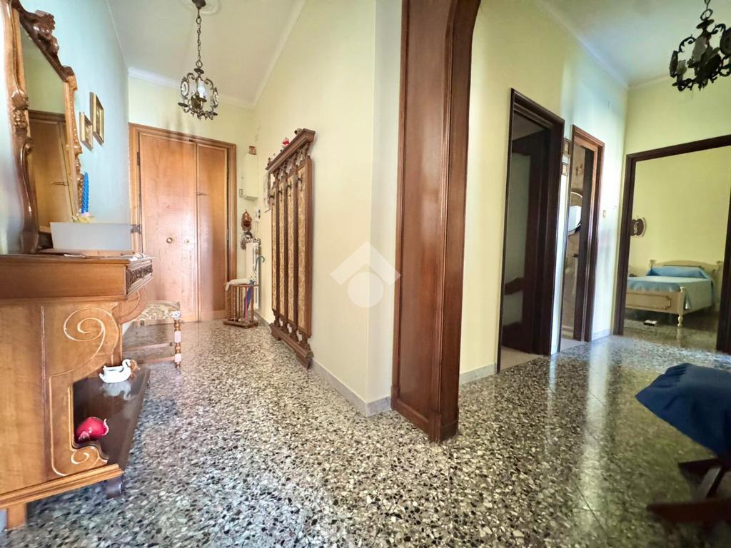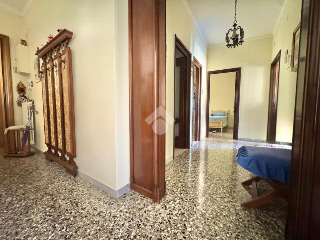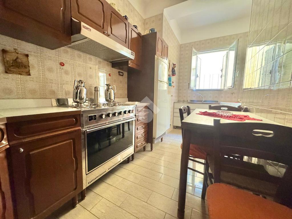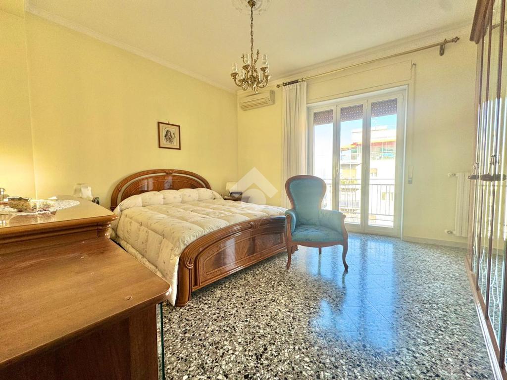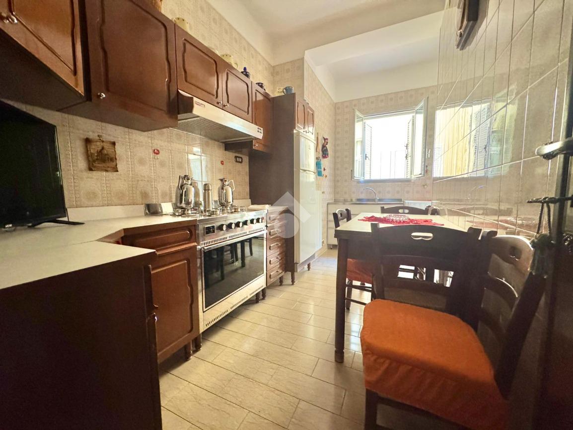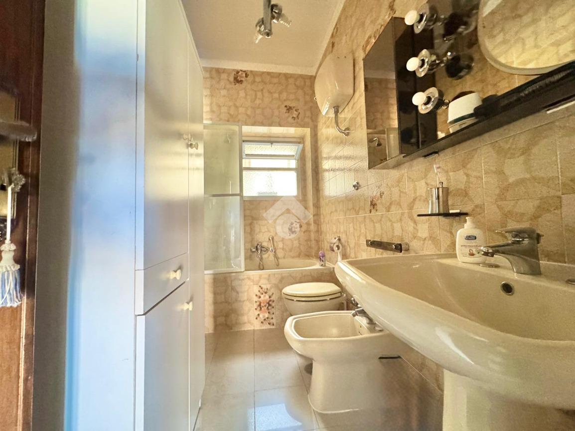 L’immobile si apre su un ingresso con disimpegno che conduce frontalmente al soggiorno, ambiente ampio e luminoso, con balcone affacciato su Viale Imperatore Traiano. Proseguendo, troviamo la cucina abitabile, anch’essa dotata di balcone, ideale per garantire comfort e funzionalità.
