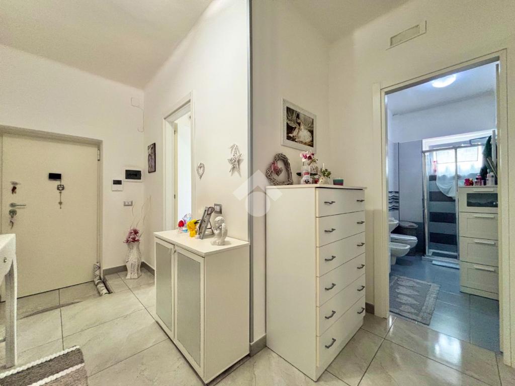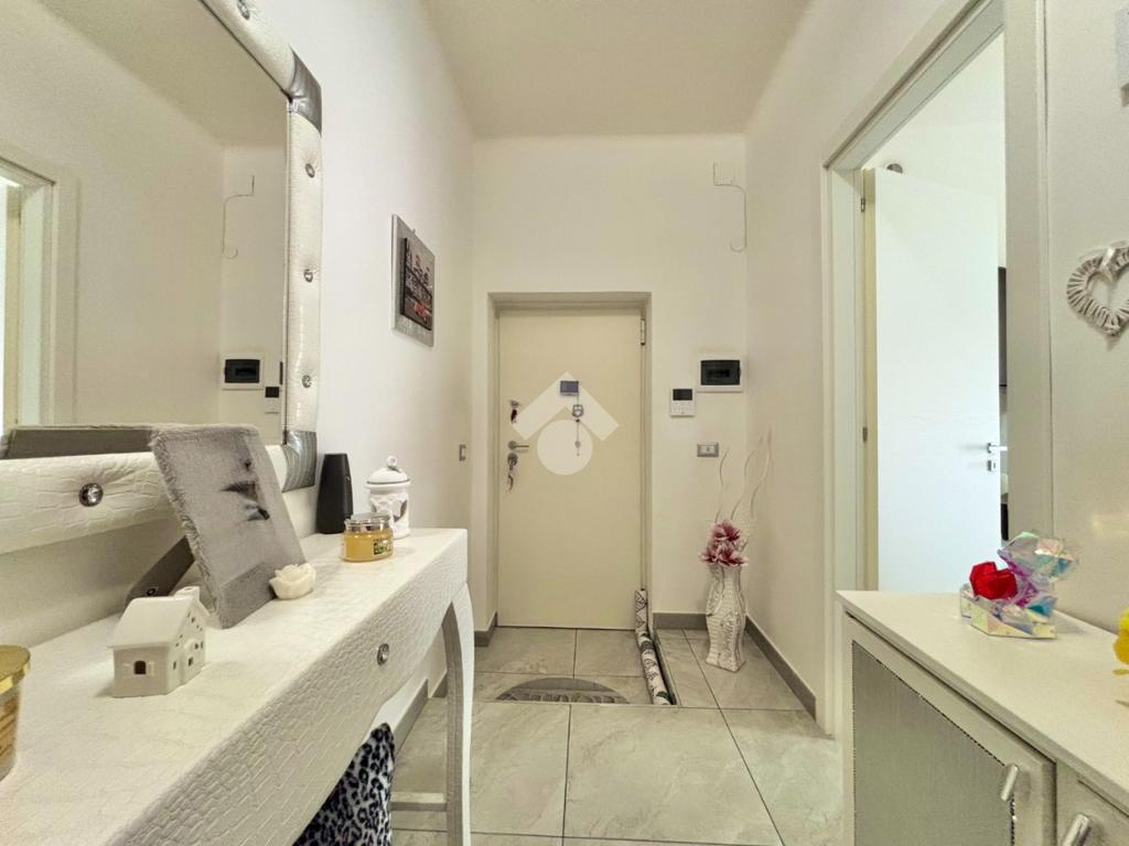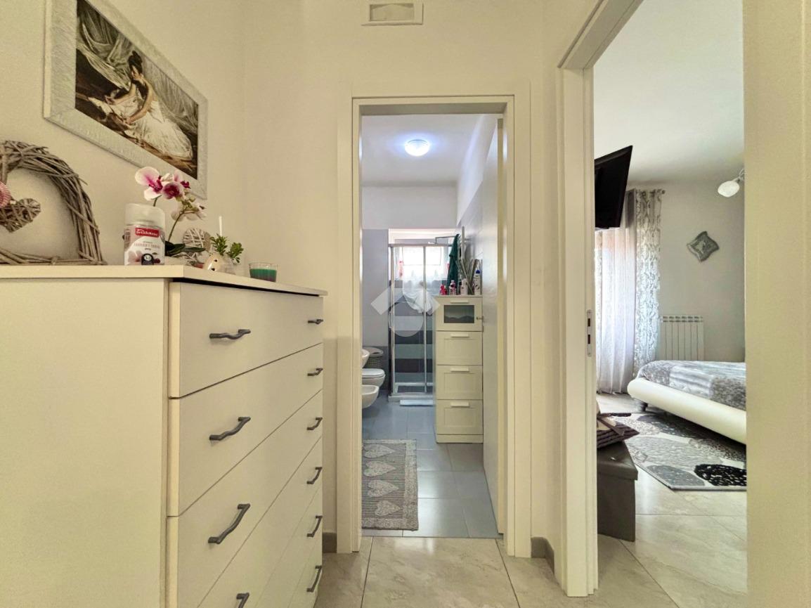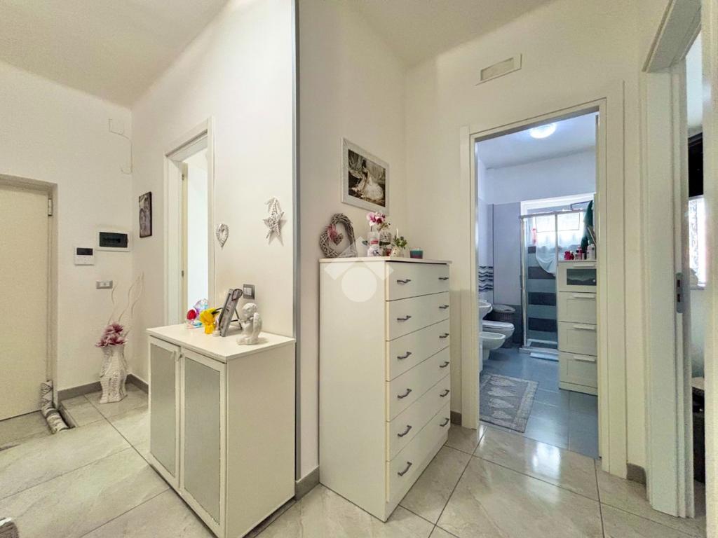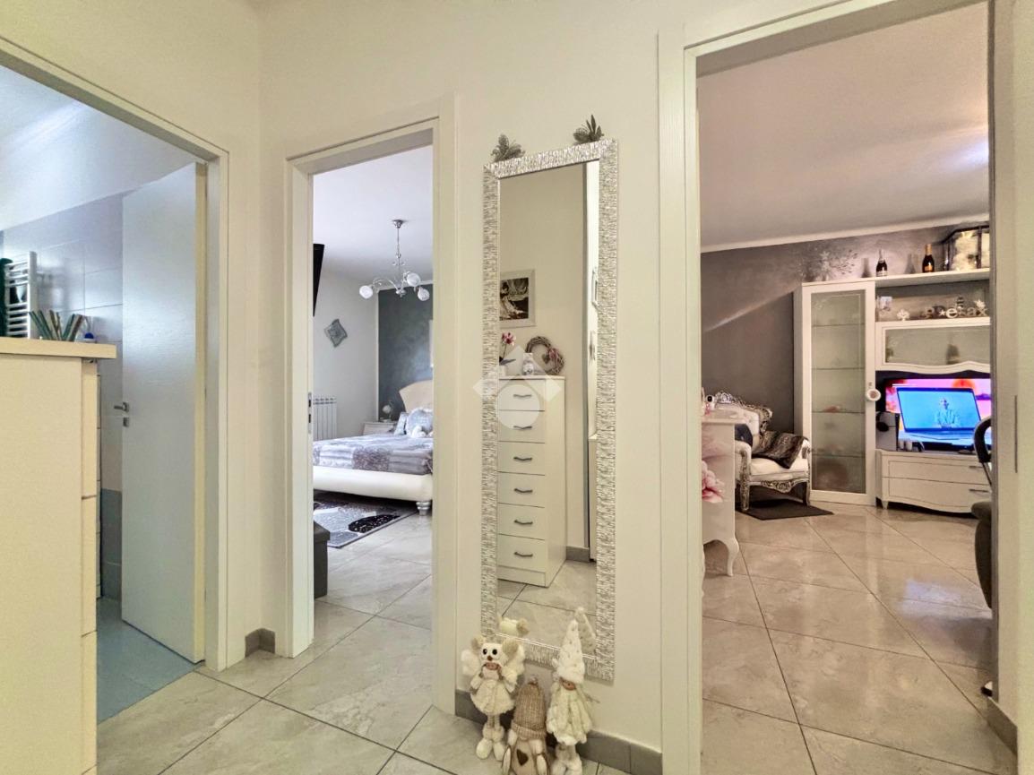 Gli infissi in PVC con vetrocamera a taglio termico, dotati di apertura vasistas, assicurano un ottimo isolamento termico e acustico, contribuendo al comfort abitativo. Le porte interne, nuove e a battente, si integrano perfettamente con lo stile contemporaneo dell’abitazione.